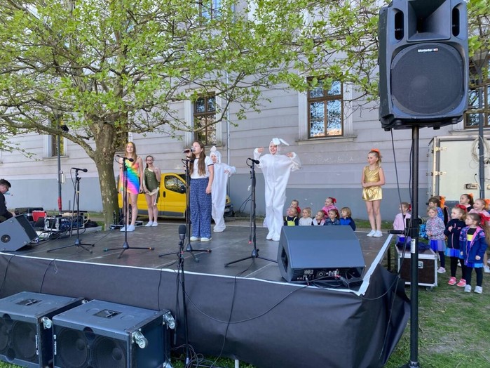 Děti z pěvecké přípravky také odvážně vystoupily na podium a zazpívaly své písně Honky tonky blues a Na okně seděla kočka. Děvčata 1. – 6. ročníku společně předvedla choreografii Fauna a flóra a také další rytmické tance.