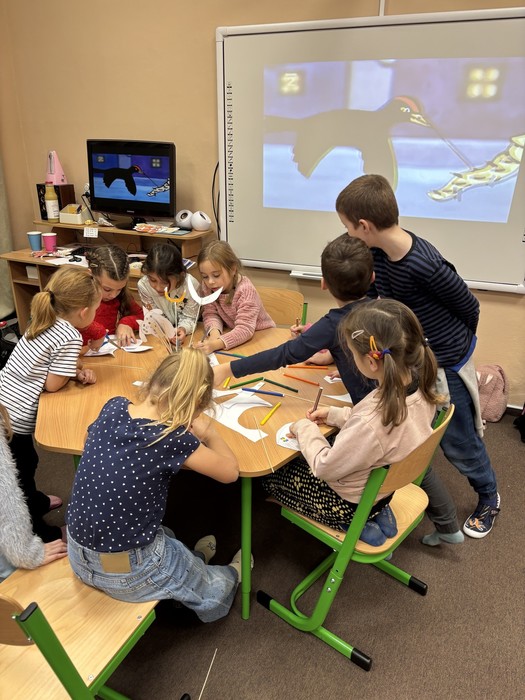 10. prosince měli žáci literárně-dramatického oboru a žáci hudební nauky vánoční tandemovou výuku. Společně vytvořili malé hudební divadlo – vyrobili si vlastní ploché loutky, s nimiž vymysleli a zahráli příběh inspirovaný vánočními koledami. Seznámili se také s tradiční verzí České mše vánoční s ilustracemi Josefa Lady. Celé představení doprovodili také zpěvem, takže ve třídě panovala krásná a tvořivá atmosféra.